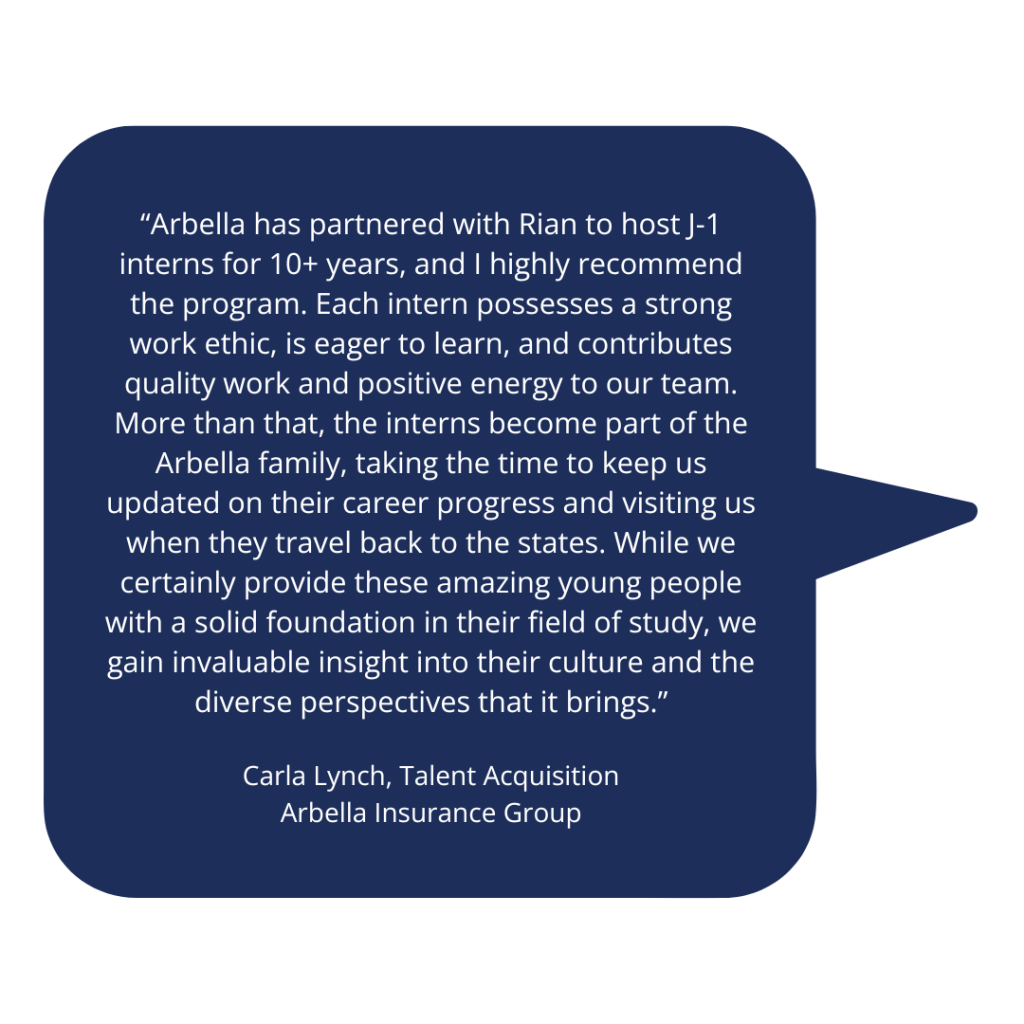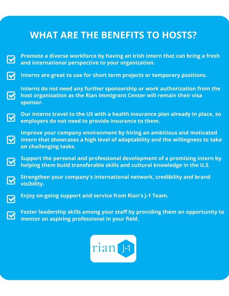 Each year Rian J-1 sponsors up to 500 motivated and ambitious Irish University graduates on our visa program, and many employers benefit from this program by hosting these young Irish exchange visitors through internship placements. Having completed their studies at University, our Irish graduates are highly motivated and ready for the challenge of living and working in the United States for a year. An Irish intern will bring a fresh and international perspective to your organization.