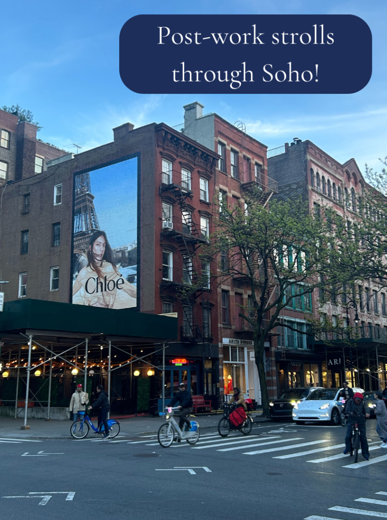 Saoirse’s evenings often ended with a walk from Soho to Grand Central, where she would catch the train to her apartment in Queens. Living in Astoria was a “nice break from the city” she adds. Admitting “the city is tough when you start out”, emphasizing the importance of joining groups and building connections. Outside of work, Saoirse found community through sports and cultural groups including playing Gaelic football at the O’Donovan Rossa Irish Football club in Queens, joining the Irish network and becoming part of the board, and joining walking groups all throughout the city. Another highlight of Saoirse’s J-1 year was reaching the senior championship final with her GAA team. She played the final game right before she left for Ireland and is so grateful for all the girls she met through that team.